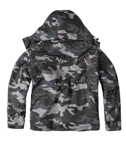 Bunda je vybavena kapucou s praktickým stahováním na obou stranách pomocí pružné tkaničky zajištěné brzdičkami.