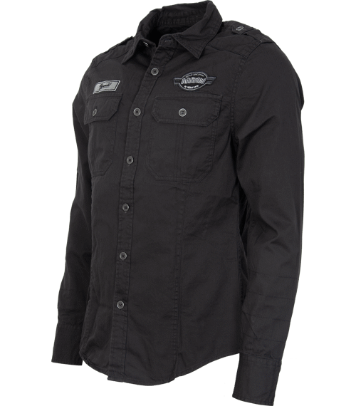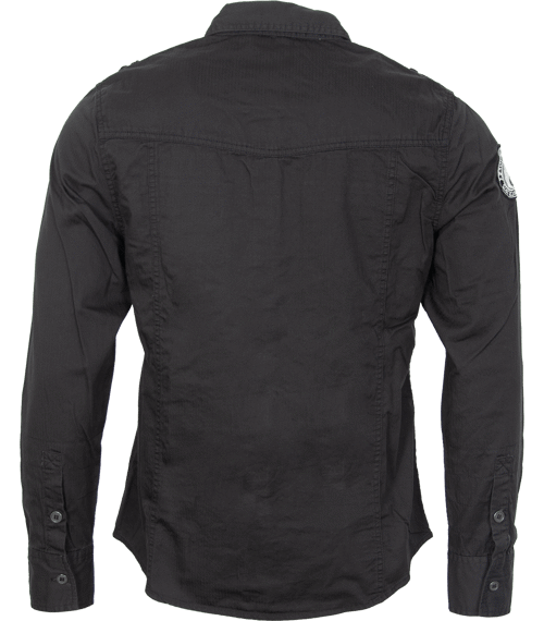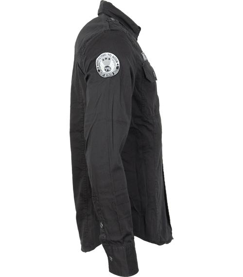 Volnočasová elegantní košile s dlouhým rukávem. Zhotovena z lehčího, ale pevného bavlněného materiálu mírně opraného vzhledu. Klasický střih a doplňky odkazující ke stylu vojenských košil z ní dělají ideální chlapskou košili, ve které ve městě rozhodně vyniknete.